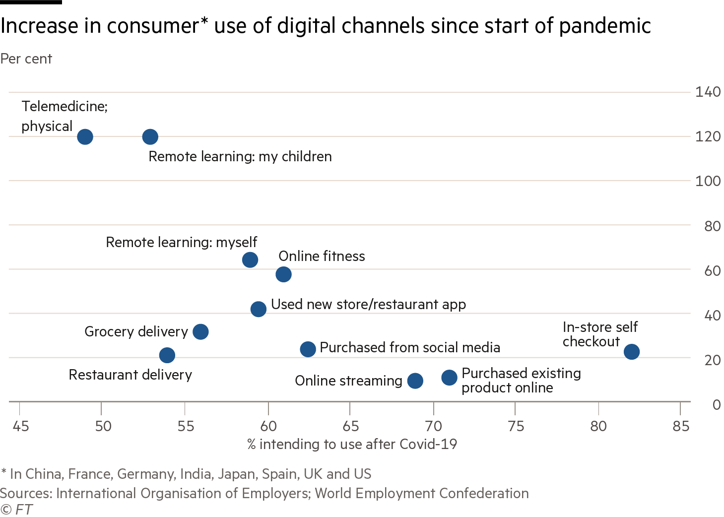 The impact of the digital economy extends beyond the consumer sector. Ibis World estimates that after stagnant growth in the second year of the pandemic, online commerce will expand from just over one quarter of all business activity in 2020 to reach 28 per cent in 2023. Meanwhile, research in the Socio-Economic Review in 2021 said 70 per cent of service industries in the US – more than 5mn businesses – were potentially affected by one or more platforms.
