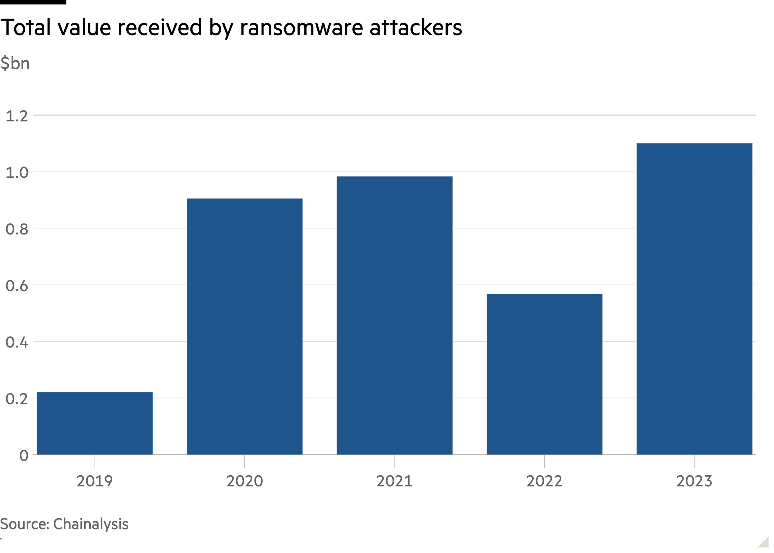 In February 2024 Chainalysis, a blockchain data platform, said known ransomware payments in 2023 exceeded $1bn, a new high after a respite in 2022. Given the difficulty in tracking all incidents, this is probably a conservative figure. The incidence of “big game hunting” – where targets have a high value or high profile or both – has also risen. Ransoms greater than $1mn have increased as a share of the total volume of payments.